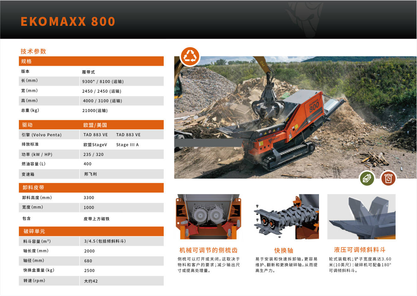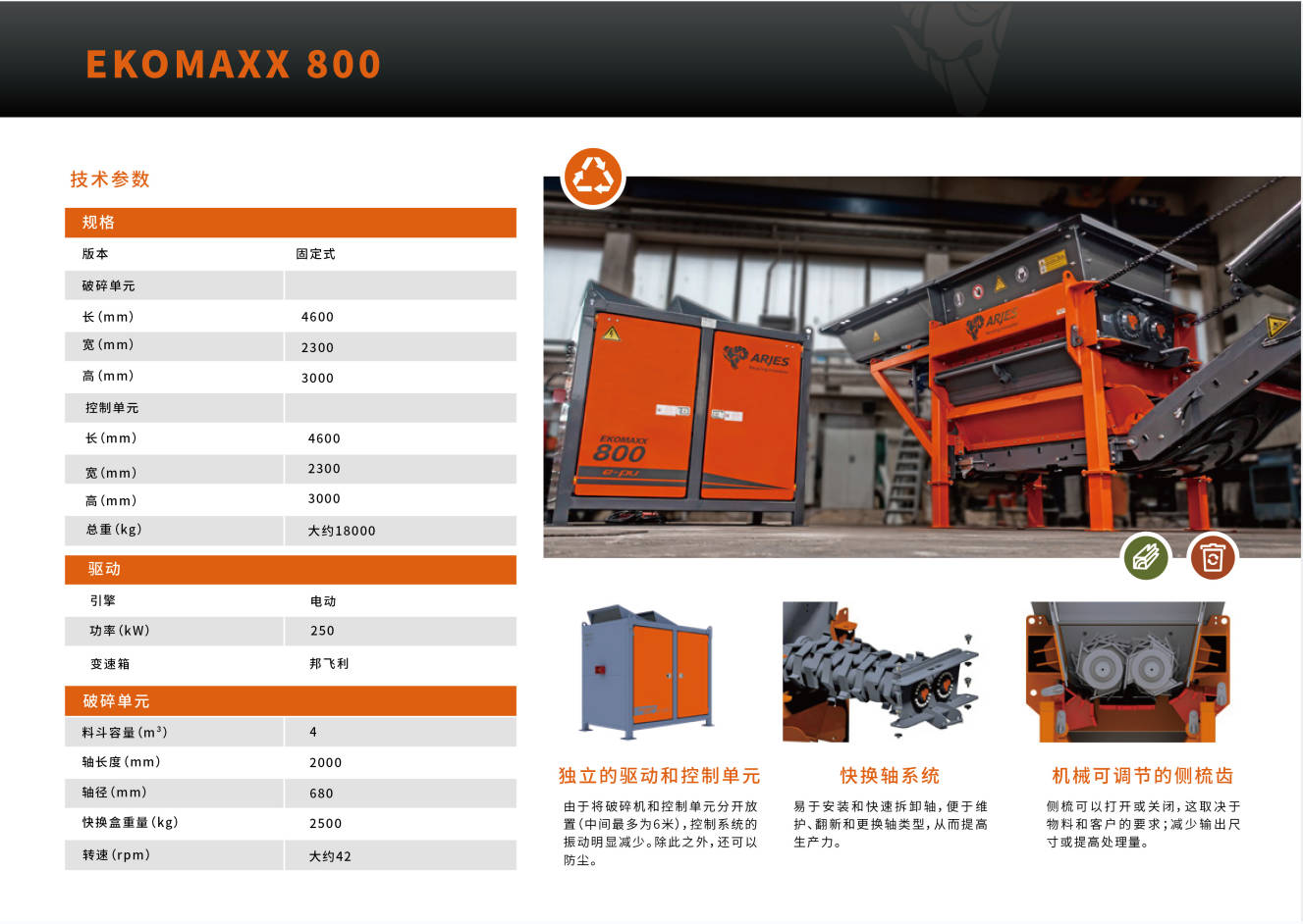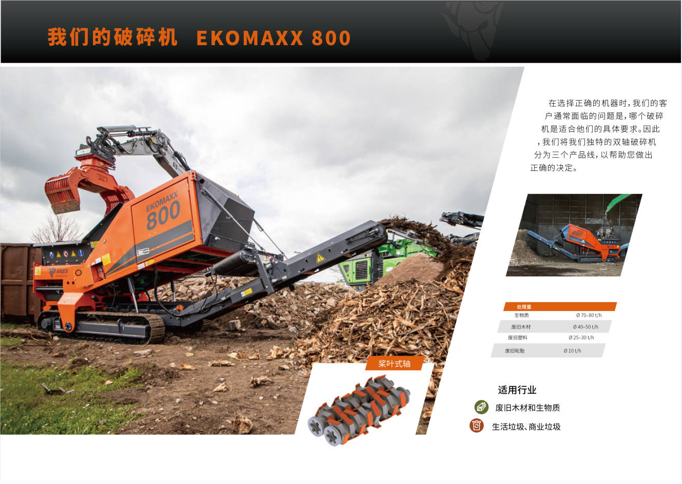 ARJES公司以其雙軸破碎機而聞名其產(chǎn)品具有超高的移動性能。ARJES EKOMAXX 800系列破碎機是根據(jù)市場多場景需求設(shè)計并制造的固廢垃圾處理設(shè)備,可破碎例如輪胎、生物質(zhì)等。德國原裝的這款設(shè)備,可移動,可固定;功能強,能耗低,快換軸優(yōu)勢,易維護。